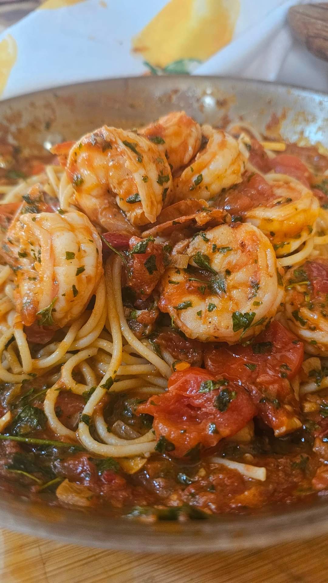 This Shrimp Spaghetti with Tomato Basil Sauce is a simple, fresh pasta dish made with sautéed shrimp, juicy summer tomatoes, garlic, and plenty of fragrant basil. The sauce is created right in the pan by combining the tomato juices with starchy pasta water and a generous handful of grated parmesan, giving you a light flavorful coating that clings to the pasta.