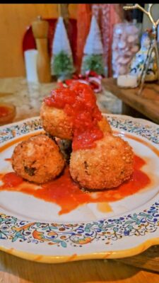 Arancini are golden, Italian fried rice balls filled with a rich , delicious meat sauce and creamy mozzarella cheese. They are an Italian street food that can be found all over Italy. These delicious rice balls whose name means “little oranges” in Italian due to their shape and color, are a beloved snack or appetizer enjoyed across Italy. With variations reflecting the unique flavors of different regions. From the classic meat and mozzarella- filled version to modern twist featuring saffron, peas or even vegetarian fillings. Whether served at an elegant dinner party or grabbed from a street vendor , arancini are the perfect blend of texture and taste- crunchy on the outside, tender and rich on the inside.