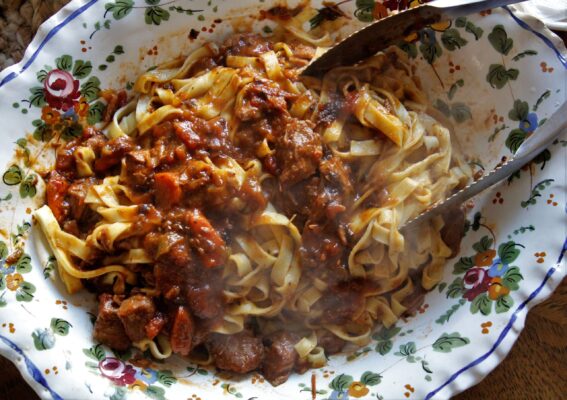 Here’s the first tip when you make this beef ragu pasta recipe, you can cook the pasta ahead of time. Since this meat sauce takes longer to cook than the pasta, cook the pasta run it under cold water to stop the cooking process, then toss in the beef ragu just to heat through.