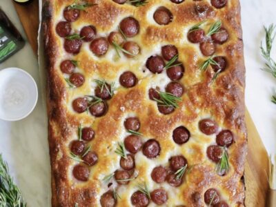 Tuscan Grape Focaccia recipe Growing up on a little farm in Tuscany, autumn was always my favorite season. It was grape…