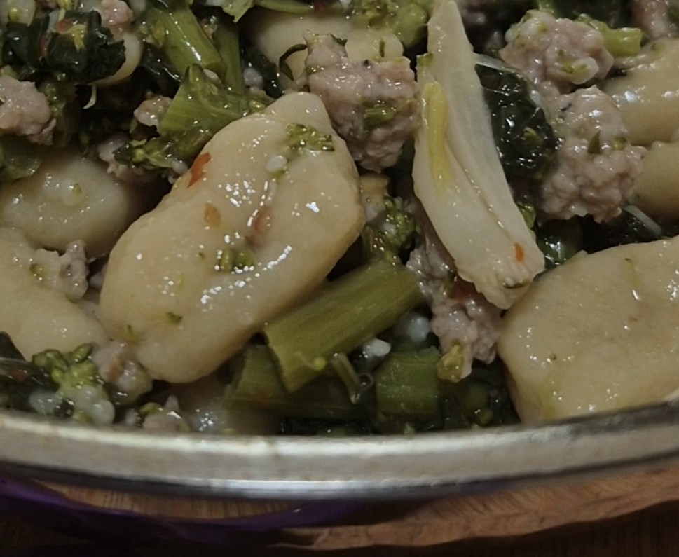 Reheat gently in a skillet with a splash of water or broth to loosen the sauce.
