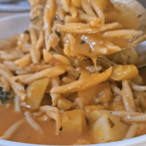A classic Italian one‑pot dish where pasta and potatoes cook together, creating a naturally creamy, comforting sauce.