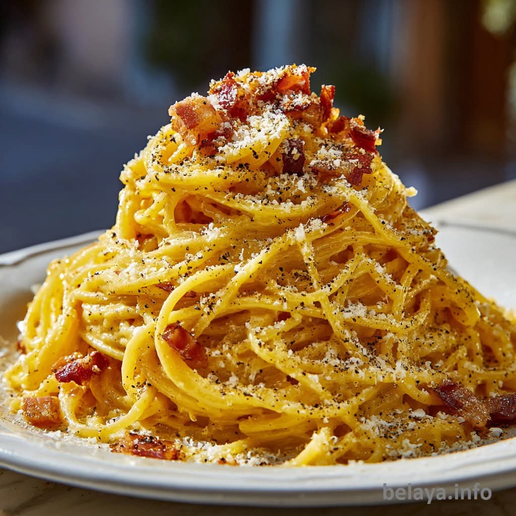 A traditional Roman pasta made with eggs, Pecorino Romano, black pepper, and crispy guanciale—simple, rich, and timeless.