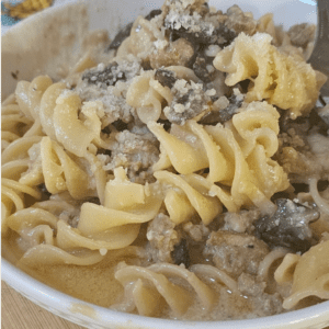 A deeply savory sauce made with mushrooms and Italian sausage, perfect for your favorite pasta shape.➡️ Link to recipe