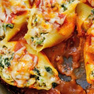 Large pasta shells filled with cheese and spinach and topped with my easy marinara sauce—perfect for entertaining.