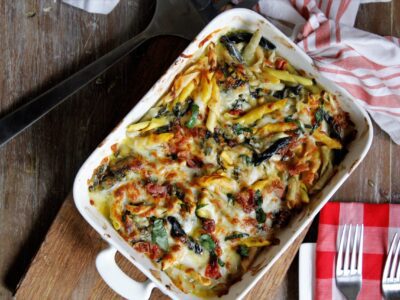 Baked Pasta Florentine Nothing is better than this Gemille shaped baked pasta casserole, smothered in creamy, cheesy bechamel sauce. It really…