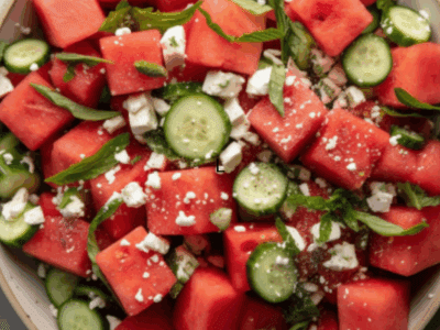 Watermelon Cucumber Feta Salad Watermelon cucumber Feta Salad with Lemon-Honey Dressing When the weather warms up and watermelon starts showing up…
