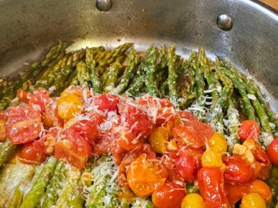 Parmesan asparagus with blistered tomatoes This Asparagus topped with grated parmesan and blistered tomatoes is a stovetop side dish that is…