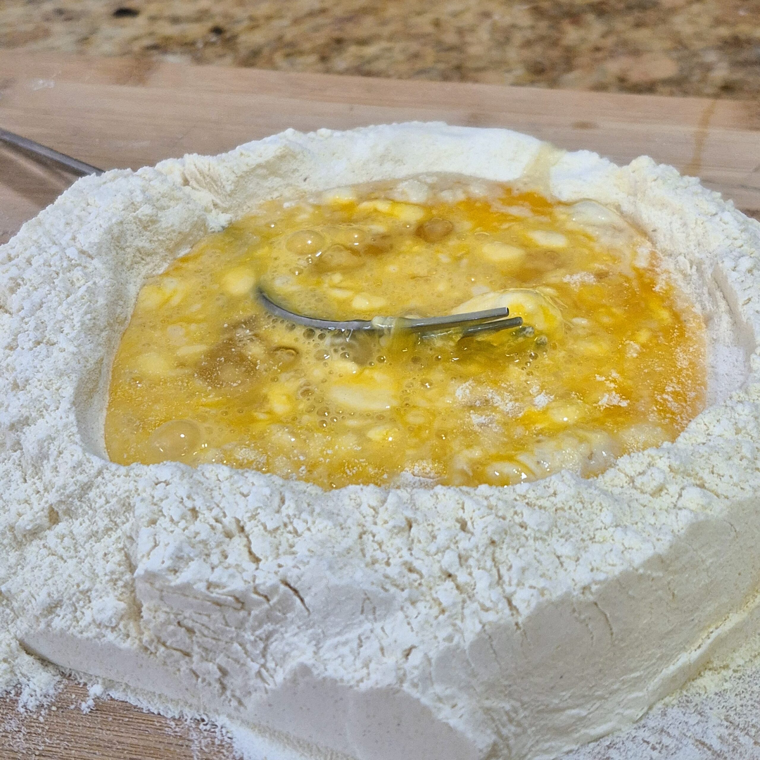 Roll out about ⅔ of the pasta frolla and press it into a 9-inch pie dish or tart pan, bringing the dough up the sides.
