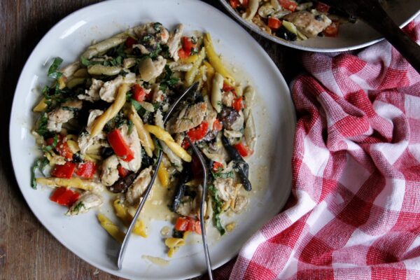 In my kitchen I use the same ingredients in many different recipes. It saves trips to the store and cuts down on waste. For instance, this pasta dish uses the same ingredients I would use to make a chicken Philly sandwich or a Philly style pizza, cooking this way makes meal easier.