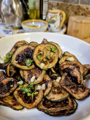 Thinly sliced zucchini, fried until golden, then marinated with vinegar, garlic, and mint—this Southern Italian classic is a simple and flavorful way to enjoy summer zucchini.