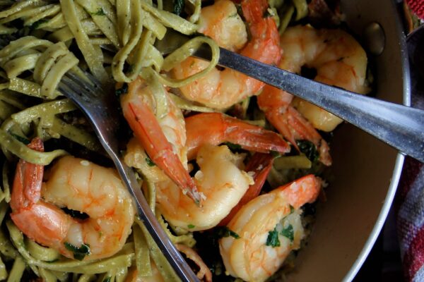 Lastly in this pasta recipe you can use chicken breast cut in small pieces, in place of the shrimp.