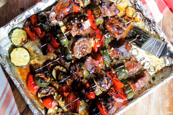 They also burn, soaking wooden skewers in water for 30 minutes helps to prevent them from burning while cooking. I prefer metal skewers , which have a long life are reusable and thus easier on the environment. They won’t catch on fire , but you do need to be careful as they get incredibly hot. We’re in the grilling season and in my house meals on metal skewers and Summer go together.