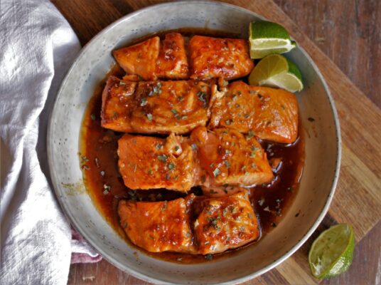 Not only is it impress it’s delicious. Tender salmon fillets coated in a garlic, honey, lime sauce that will have you craving this salmon meal often.
