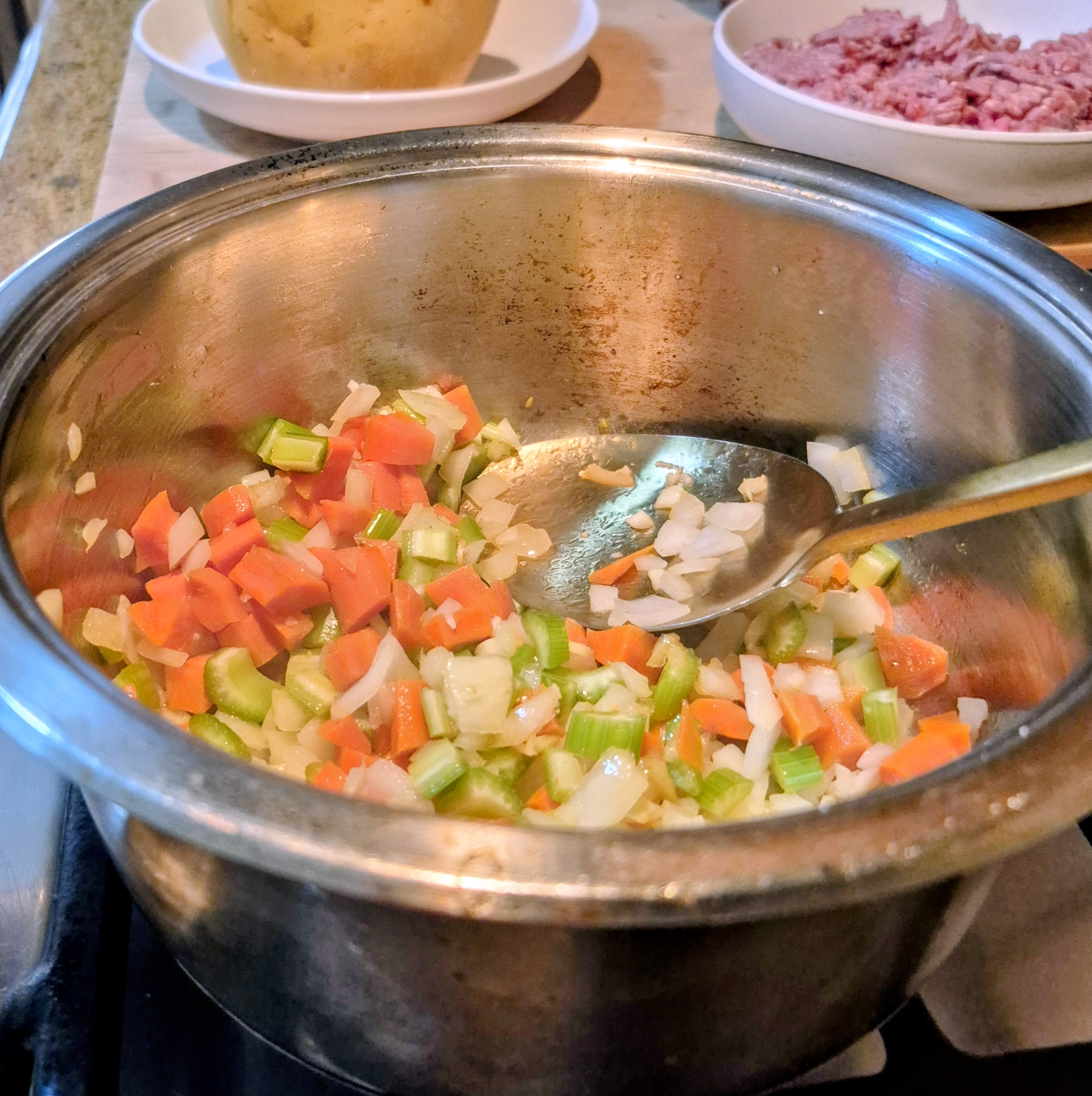 • 1 cup each chopped onion + celery + carrots