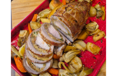 Grilled leg of lamb always feels like a celebration meal to me, especially when it’s seasoned with garlic , rosemary, parsley and butter. I make little slits all over the boneless lamb leg and fill them with the garlic and herb butter. Then I spread the same butter all over the lamb, then I let the lamb marinate overnight, before grilling. Grilling is the secret that brings out the lambs natural sweetness while taming it’s unique flavor.