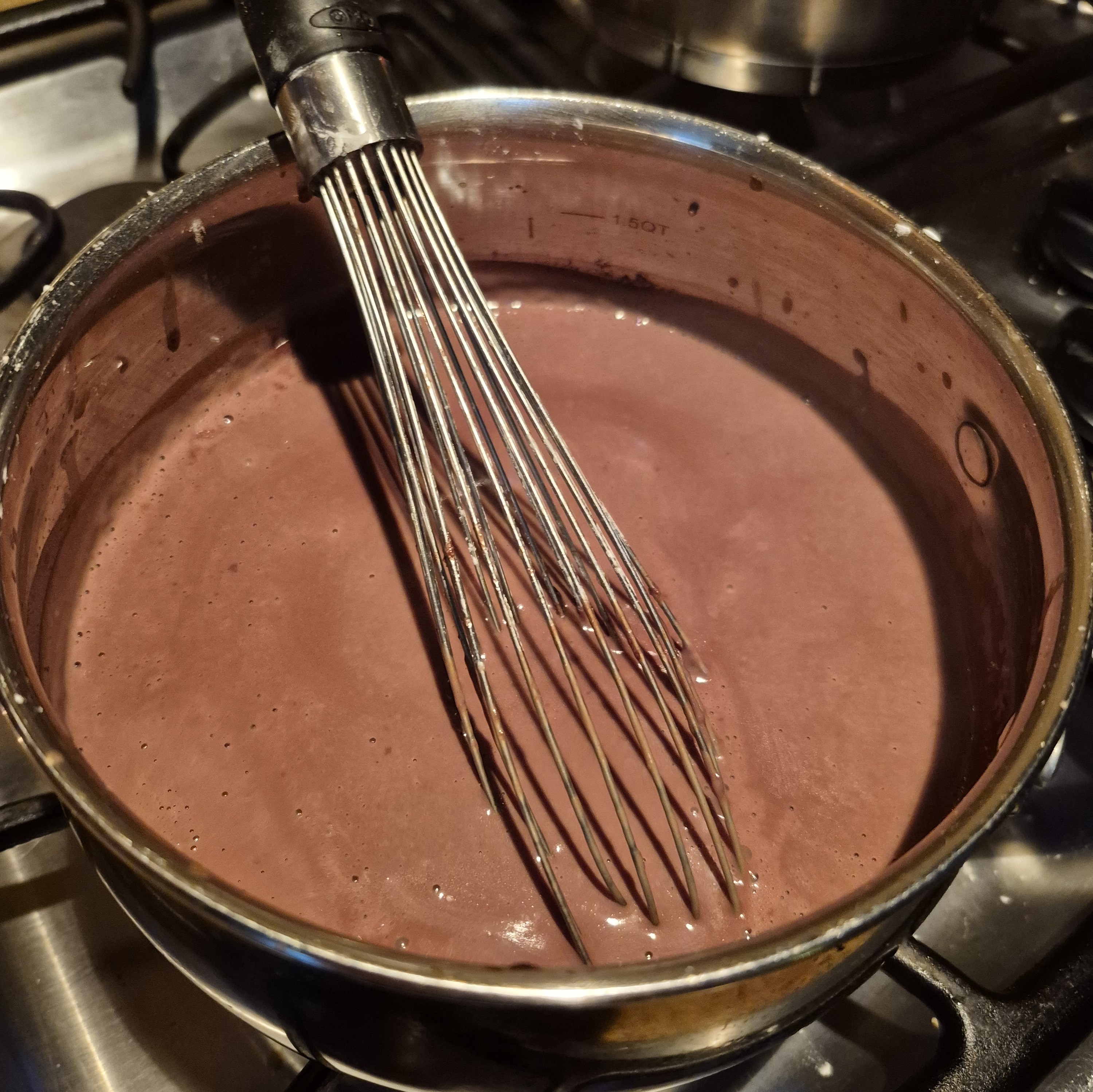 Cook for 2–4 minutes, until the hot chocolate thickens to a rich, velvety, spoon-coating consistency.