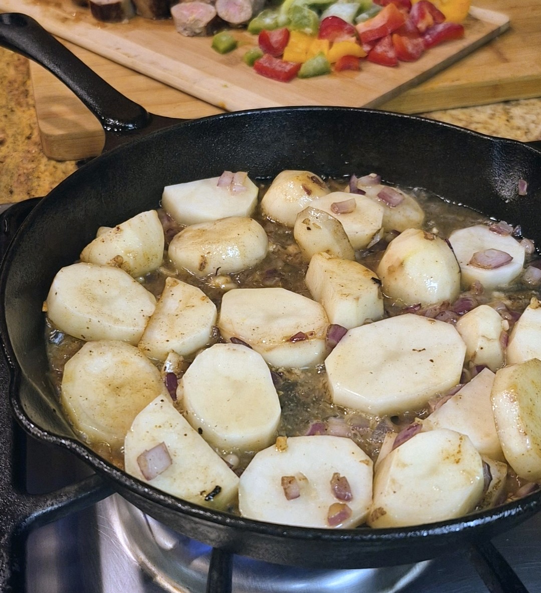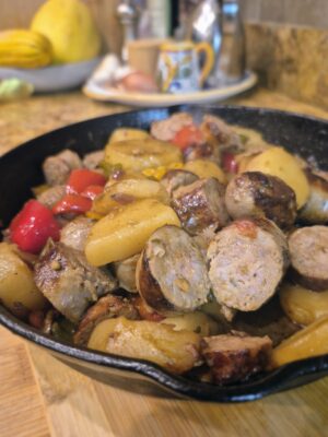 Don’t rush the browning: Let the sausage get a deep golden crust before removing it from the pan. Those browned bits (fond) are what give the peppers and potatoes their rich, savory flavor once deglazed.
