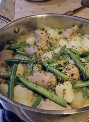 Golden potatoes, tender green beans, and savory Italian sausage come together in one pan, simmered with white wine and chicken stock for a delicious, homey dish that tastes like Sunday dinner any night of the week. Best of all, it’s ready in just 30 minutes — perfect for those nights when you want something comforting and satisfying without spending hours in the kitchen.