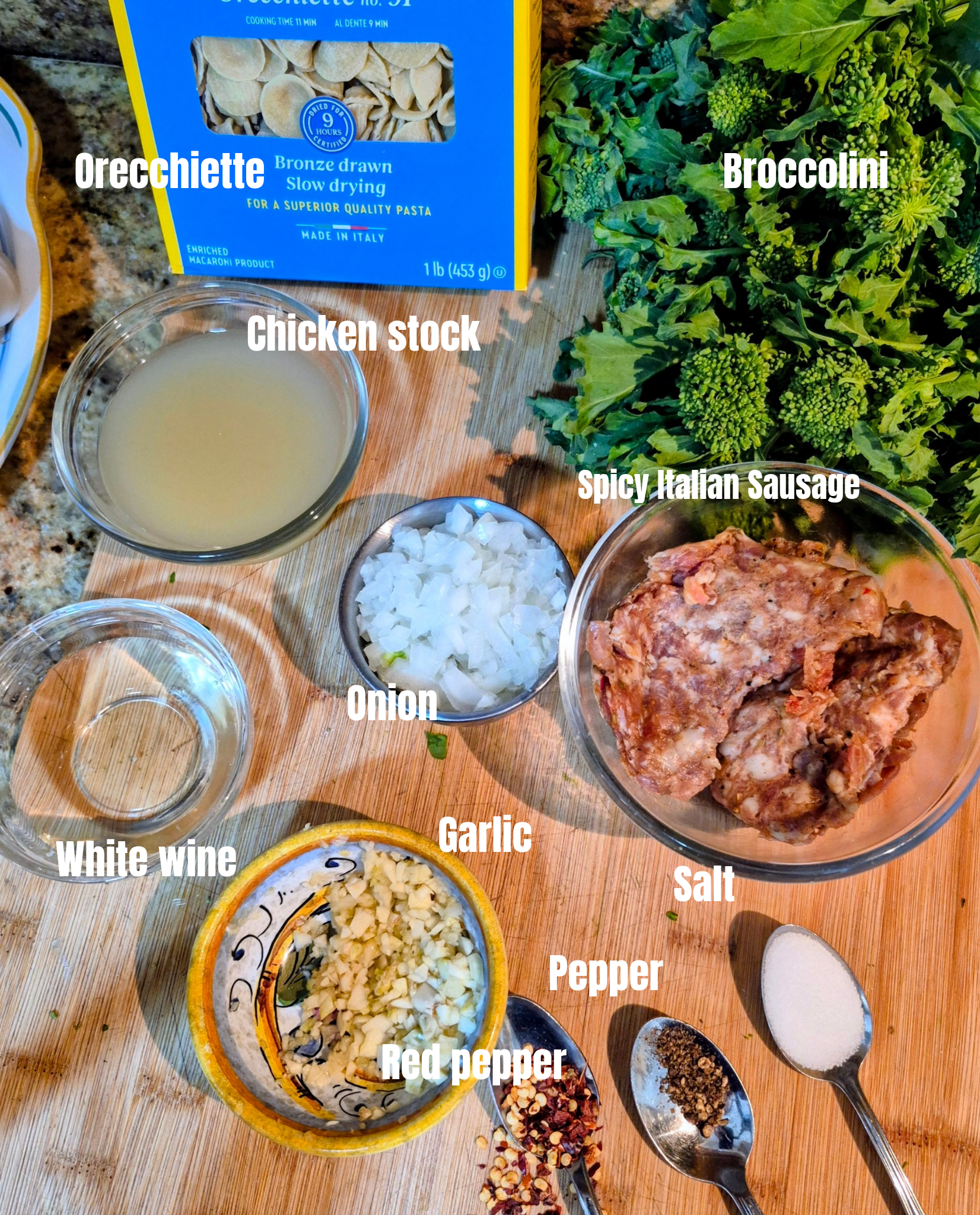 Orecchiette pasta – The name means “little ears” in Italian, and the shape is perfect for catching bits of sausage, cheese, and sauce. This pasta is traditional in the Puglia region of Southern Italy.