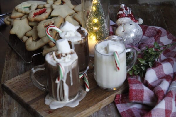 Pour them into pretty glass mugs to add a sparkle to your Holiday mood and be sure to add the candy canes when the hot chocolate is hot.