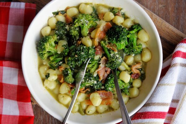 This Pesto, broccoli, gnocchi recipe was inspired by me wanting to celebrate Saint Patrick’s Day even if it wasn’t traditional, with ingredients I had on hand