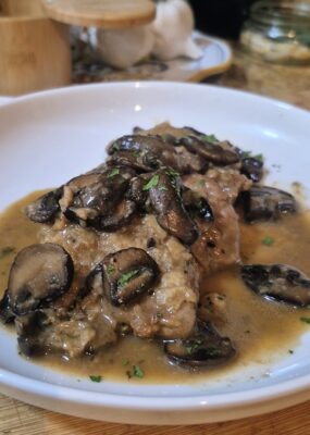 This dish first appeared on our fall menu when the cooler evenings started calling for something heartier. We wanted a dish that felt warm and comforting, yet still had a touch of elegance — something our guests could enjoy with a glass of red wine. Pork Medallions Marsala checked every box.