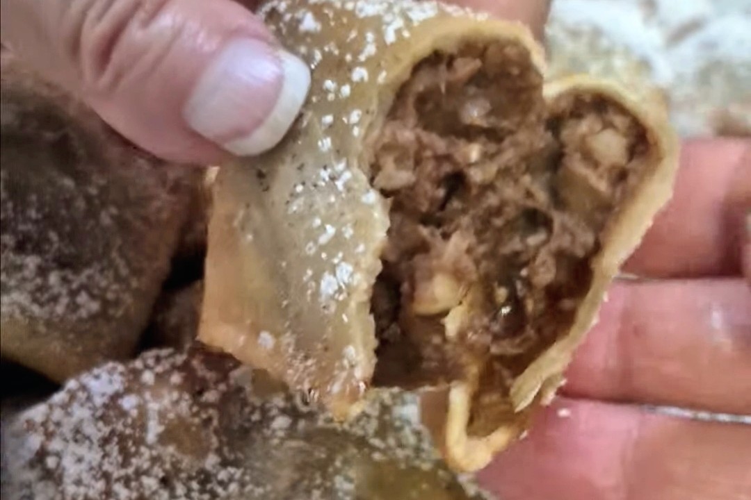 Only later did I learn that many Italian families made some version of these: a simple pasta frolla dough, filled with a sweet chickpea and cocoa mixture, folded like little ravioli, and fried until golden. It’s pure cucina povera ingenuity — turning humble pantry ingredients into something rich, comforting, and surprisingly elegant.