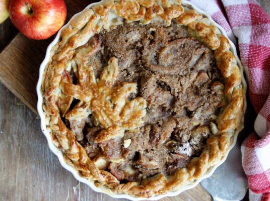 I also bake the pie in a shallow tart/quiche pan for a firmer filling, and more often than not I prebake the crust before filling, I don’t like soggy crusts And I use A crumble topping because personally I don’t like that much dough.