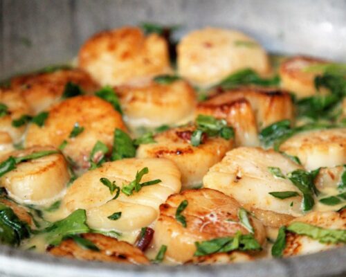 If you love scallops your going to love this creamy Seared Scallop Fettuccine pasta. This decant meal is for sea food lovers but even non lovers like it.