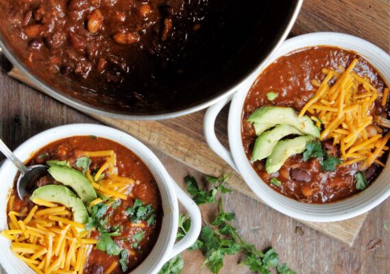 Normally, it’s all about the toppings in chili recipes. But this Two Bean Steak Chili recipe is so rich that you won’t need a lot of go -to chili toppings.